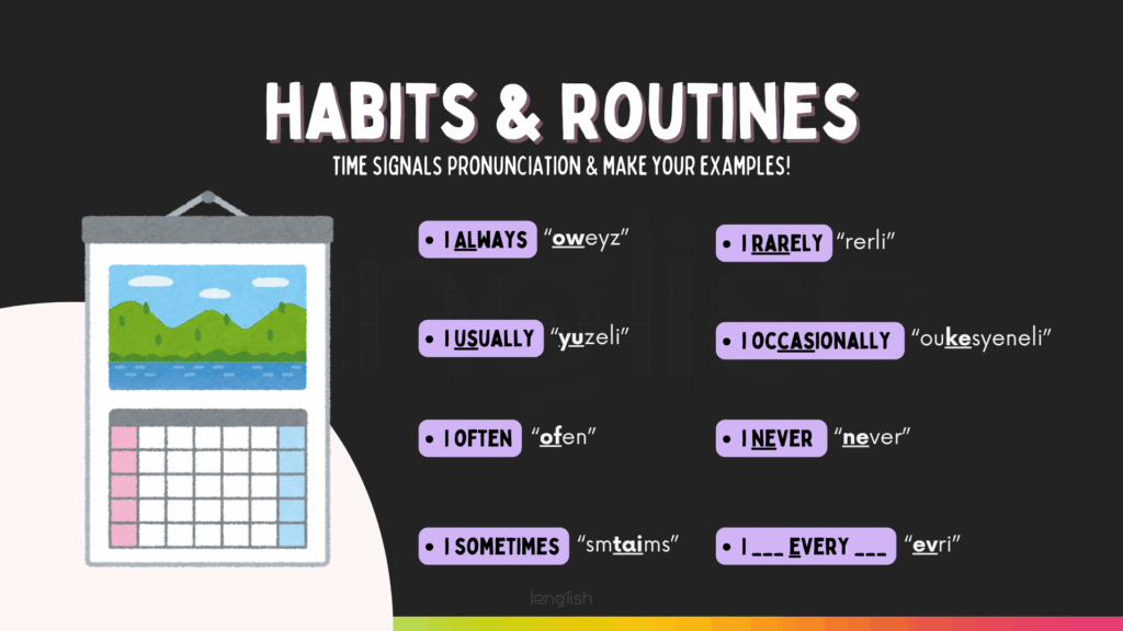 Also, these are the time signals that we can use to talk about routines/habits: